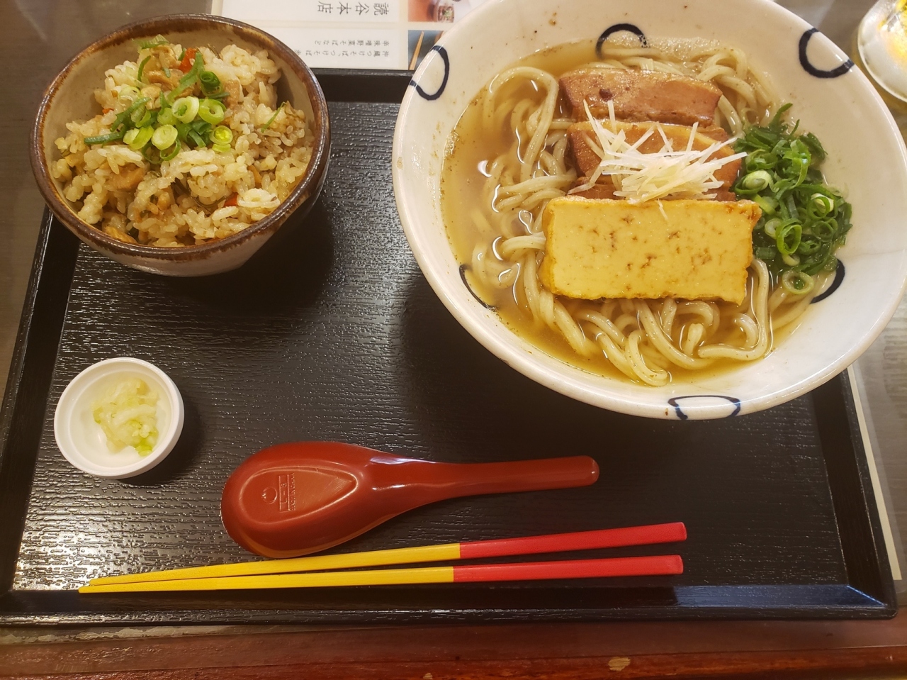 自家製出汁、自家製麺に釣られて友人がここにしようと探して行きました。常連さん達が麻婆ゆし豆腐そばも美味しいとチケットを購入していましたが初めてなので基本の沖縄そばとジューシーセットにしました。オリオンビールと共に堪能しました。モチモチ麺、また食べに行きたいです。