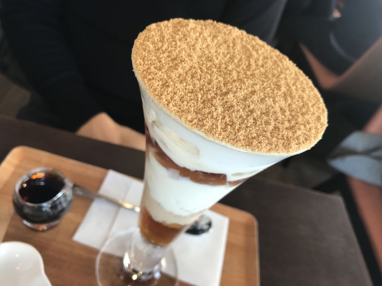 人気のカフェという情報を仕入れてからずっと行こうと心に留めていただけだったけど、今回偶然お店の前を通りかかって、待ち時間もなかったのでフラッと立ち寄った。季節のチョコパフェと常備のきなこパフェを注文。見た目がとっても美しい。味も高いチョコの味がします。オレンジが混じってるので、飽きずに全部頂きました。
