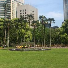 ペリカンの噴水のすぐ奥に広がる花壇です。近くで花を見るための場所というより、花壇の側にあるベンチに座って花壇を眺めながらのんびりするのがちょうどいい感じです。広々として来ている人もみんなゆったりとしていて落ち着きます。
