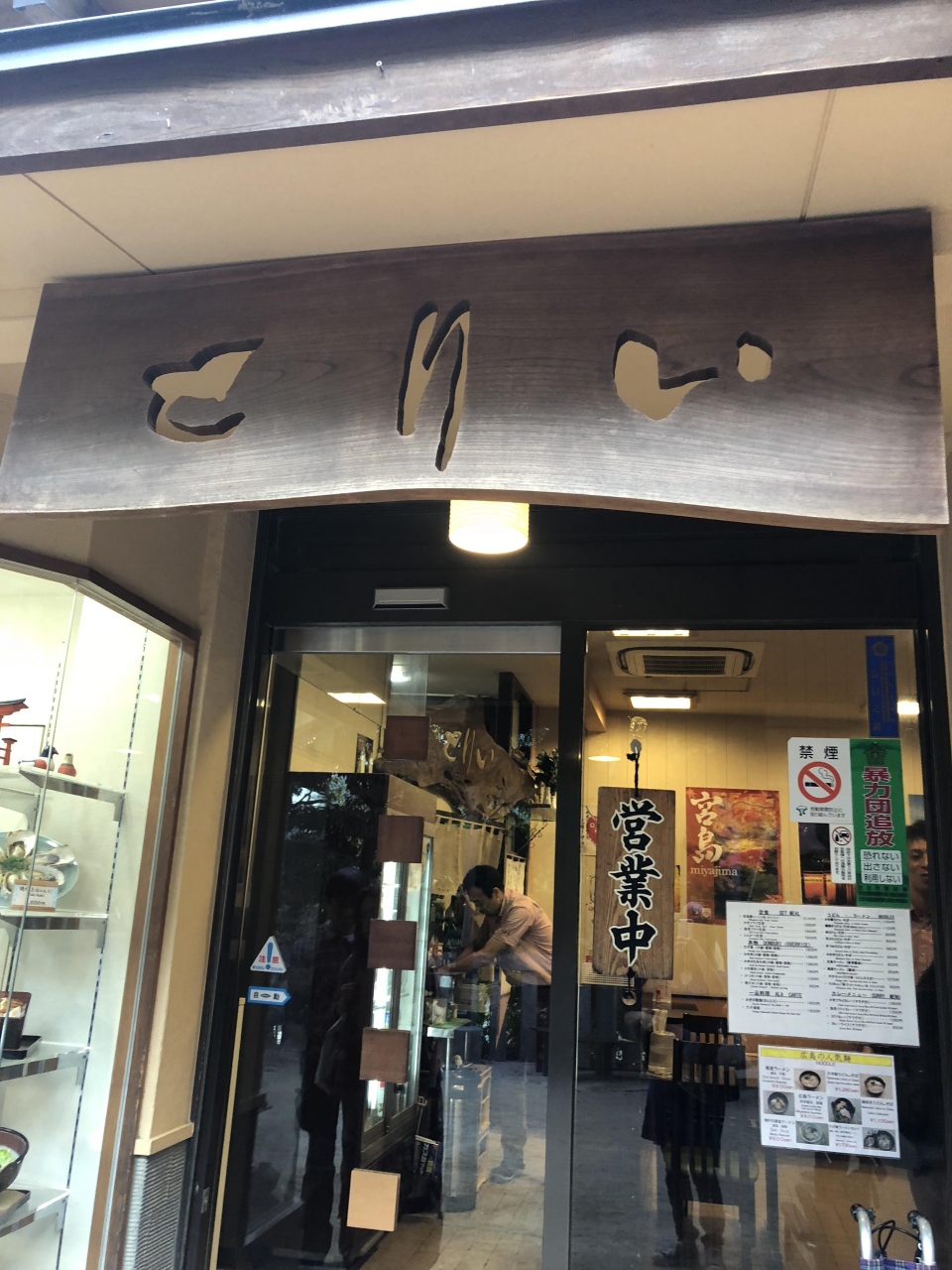 表参道商店街の厳島神社側にあります。行列ができていて何かとおもったら牡蠣を店頭で焼いていました。2つで500円、しょうゆとポン酢が店頭に置いてありました。広島名物の牡蠣の焼きたてを食べられるのがよかったです。