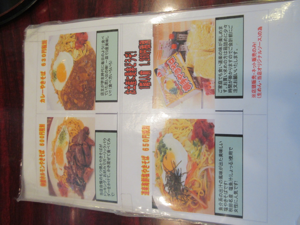 横手焼きそばで有名なお店で,四天王の一つというように宣伝される場合もあります.お店自体は居酒屋風で,焼きそば専門のお店ではありません.昼に訪れたので,やはり焼きそばを注文する人が多かったです.今回初めて挑戦した特製ホルモン焼きそばは,正直なところ,私の口には合いませんでした.コスパはマァマァかなというところです.
