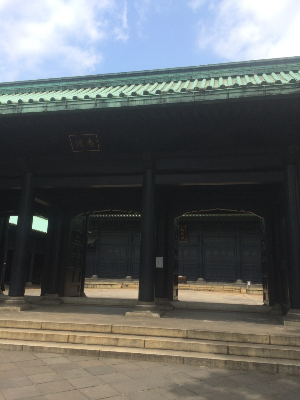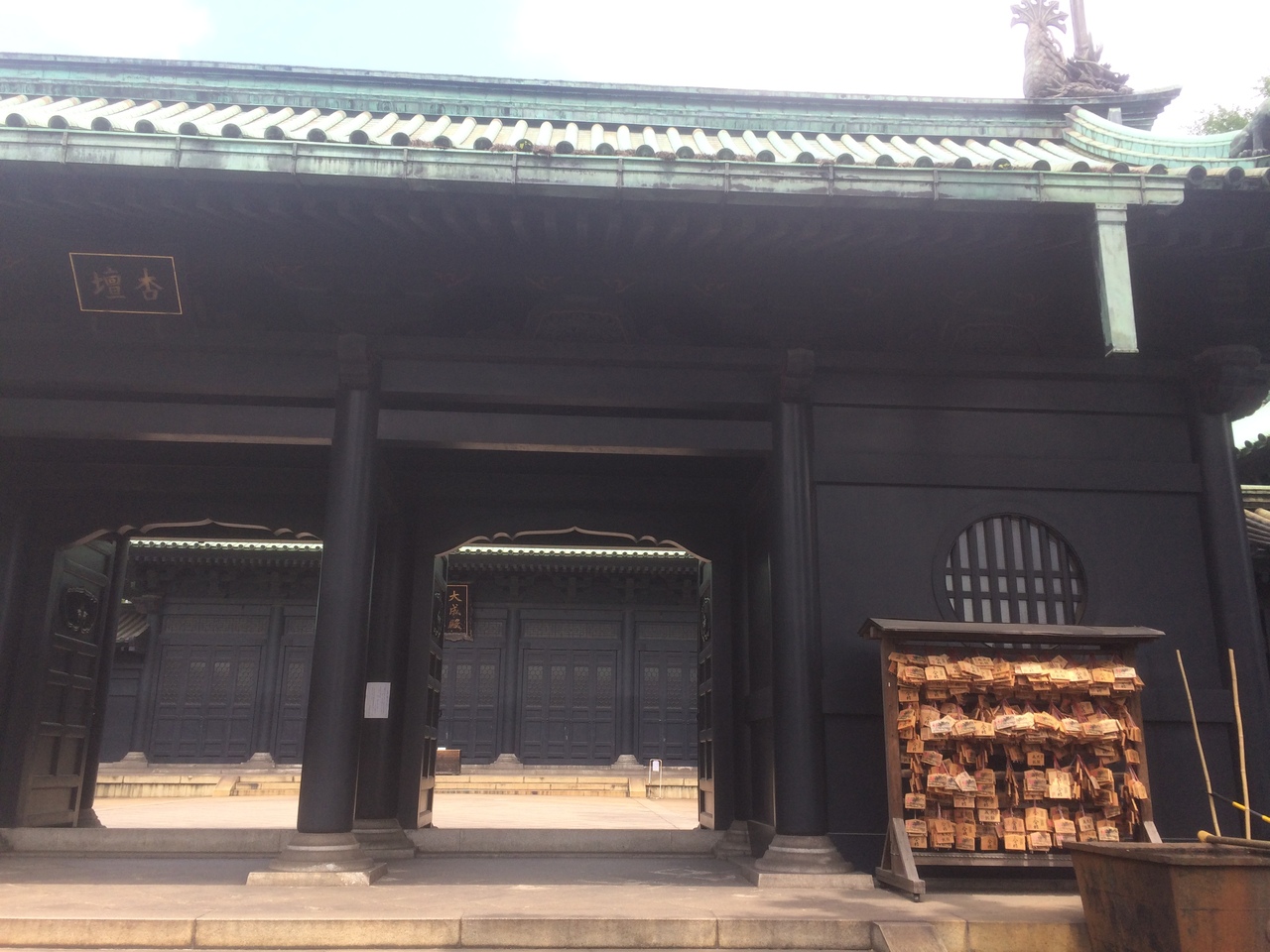 黒い横長の門で、門と言うより塀のような感じでした。中央に出入口があり3箇所から行き来出来ます。入り口の左右には絵馬がたくさん掲げられていました。黒の色がカラスの色ぽくマントのような色でした。門も立派でしたが黒色が印象に残りました。