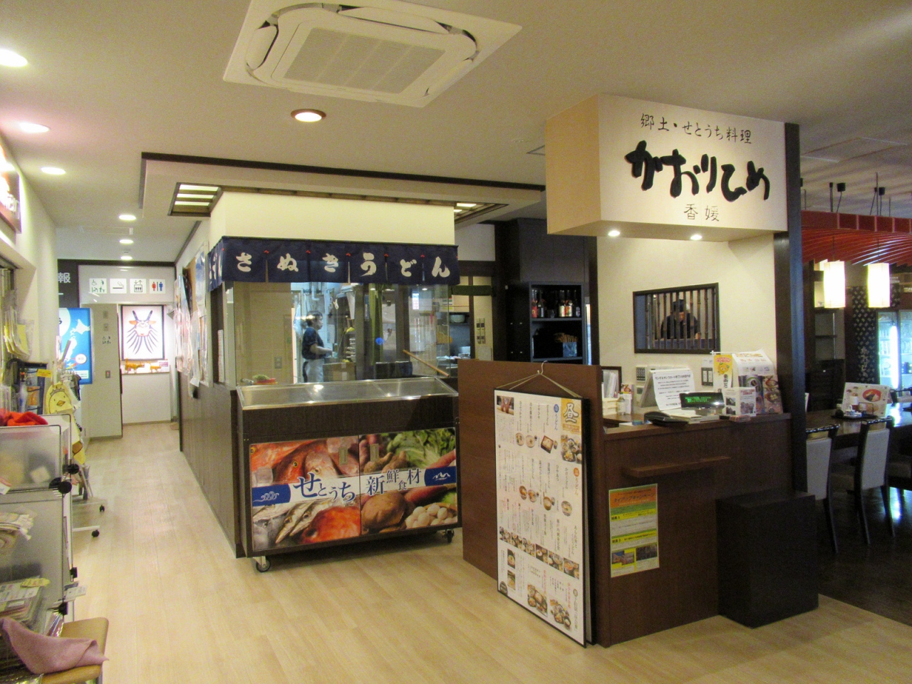 香川・愛媛の共同アンテナショップです。JR「新橋」駅の銀座口近くにあります。私自身、愛媛は一度訪れただけ、香川はまだ訪れたことがないこともあって、店内には見たことのない商品ばかりで、とても楽しい時間になりました。2階にはレストラン「郷土・せとうち料理 かおりひめ」と「工芸品・雑貨ショップ」、観光情報コーナーと盛り沢山でした。