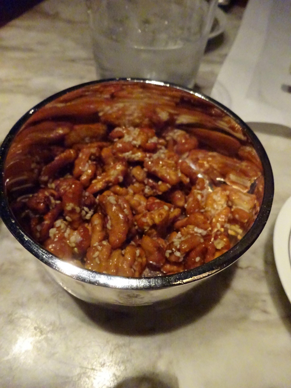 コースの最初に出る胡桃の飴掛けはとても美味しくて、食べだしたら止まりません。