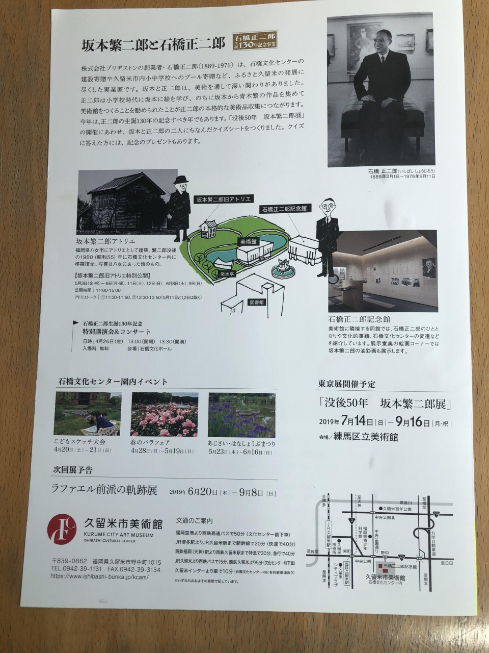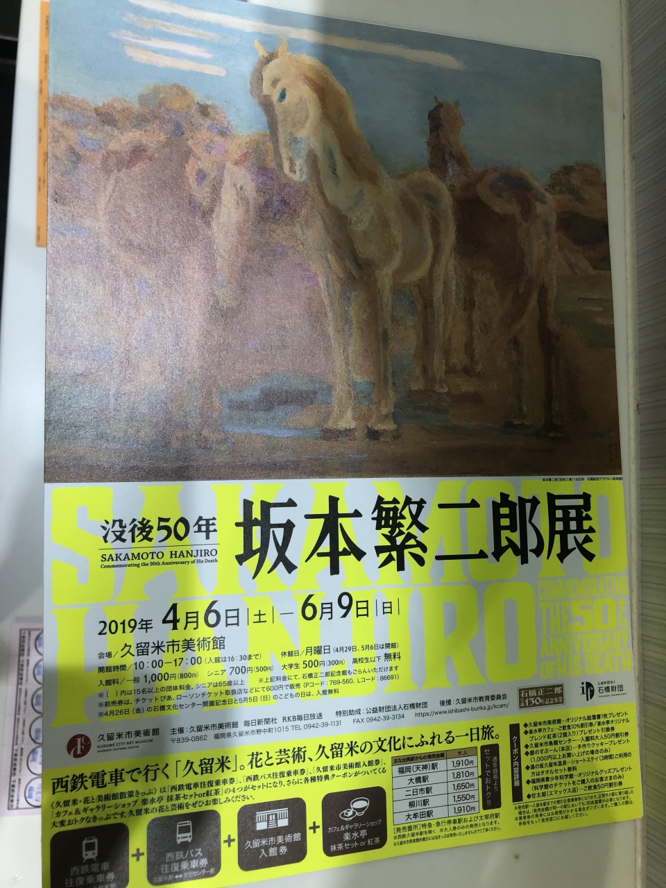 西鉄お得切符「久留米花と美術館散策切符」を購入して行きました。バラフェア中で薔薇も美しい。大勢のお客が庭にいましたが、美術展の方は空いていました。没後50年と言うことで坂本繁二郎展を開催中。クイズ形式で子供も楽しめるよう工夫されていました。