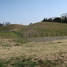 さきたま古墳群にあるさきたま史跡の博物館にもっとも近い前方後円墳が瓦塚古墳で、レストハウスの裏にあります。6世紀前半に増築された古墳は長方形の周濠が二重にあり、近くまで近寄ることはできず、離れた所から見ると2つの小山がつながった丘の様に見えます。
