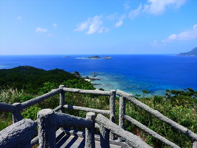 外地島の慶良間空港の脇に入口があり,階段を上って暫く歩くと展望台に出ます.ここからは久場島や慶良間の無人島を眺めることが出来る絶景のポイントになっているので,歩くのは大変ですが,是非一度訪れて欲しい場所です.珍しく人がいたので聞いてみると,ホエールウォッチングをするためのクジラの群を観察しているのだそうで,この場所からスマホで会社に連絡を入れれば,確実にクジラを見ることができるのだそうです.残念ながらクジラは見えませんでしたが,機会があればまた訪れてみたい場所です.
