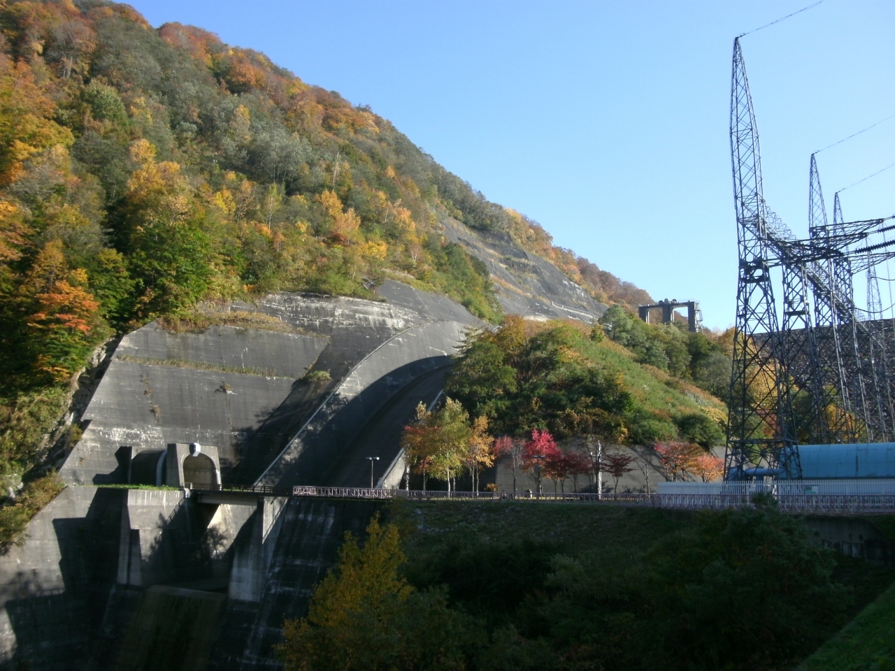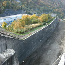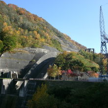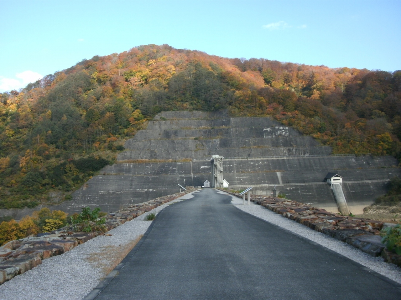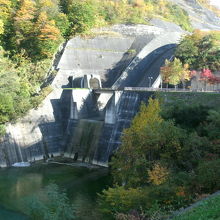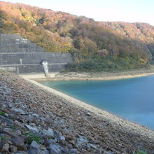 ロックフィル式ダムなので堤体がなだらかで迫力はありませんが、石積みの堤体と紅葉し始めた山々と水辺の景色がとても良かった。堤の上は歩いて散策できるのでダムマニアでない人も自然を楽しむことができると思います。