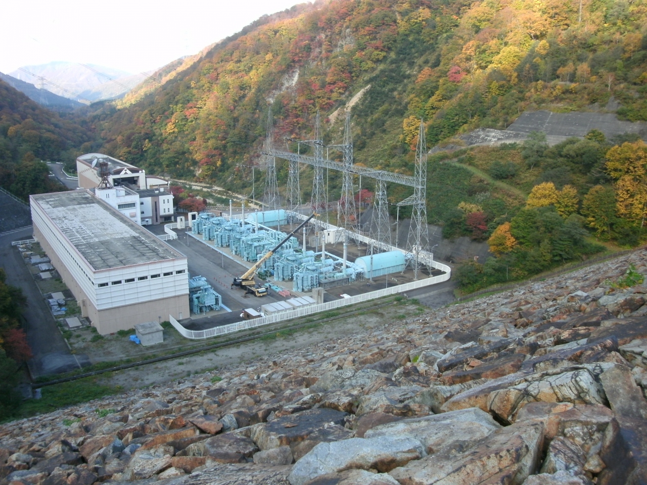 「二居ダム 」は発電を目的とした、堤高87m、堤頂長280mのロックフィル式ダムです。
