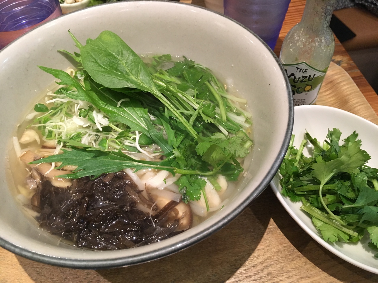 待つことしばし、提供されたフォーは自分が当初イメージしていたよりお椀が大きめでちょっと焦っる。まぁ、そうは言ってもあっさり味のフォーなわけだし、具も野菜中心でパンチ控え目なので、「やっぱ、出汁って美味しいなぁ」と無心になってフォーを食べていくと、あっという間に完食。パクチーは追加した甲斐があって、最後までパクチーのパクチー味を楽しめたのが良かった。追加していなかった、たぶん最初の一口でパクチーを食べ終わってたと思うんだよね。