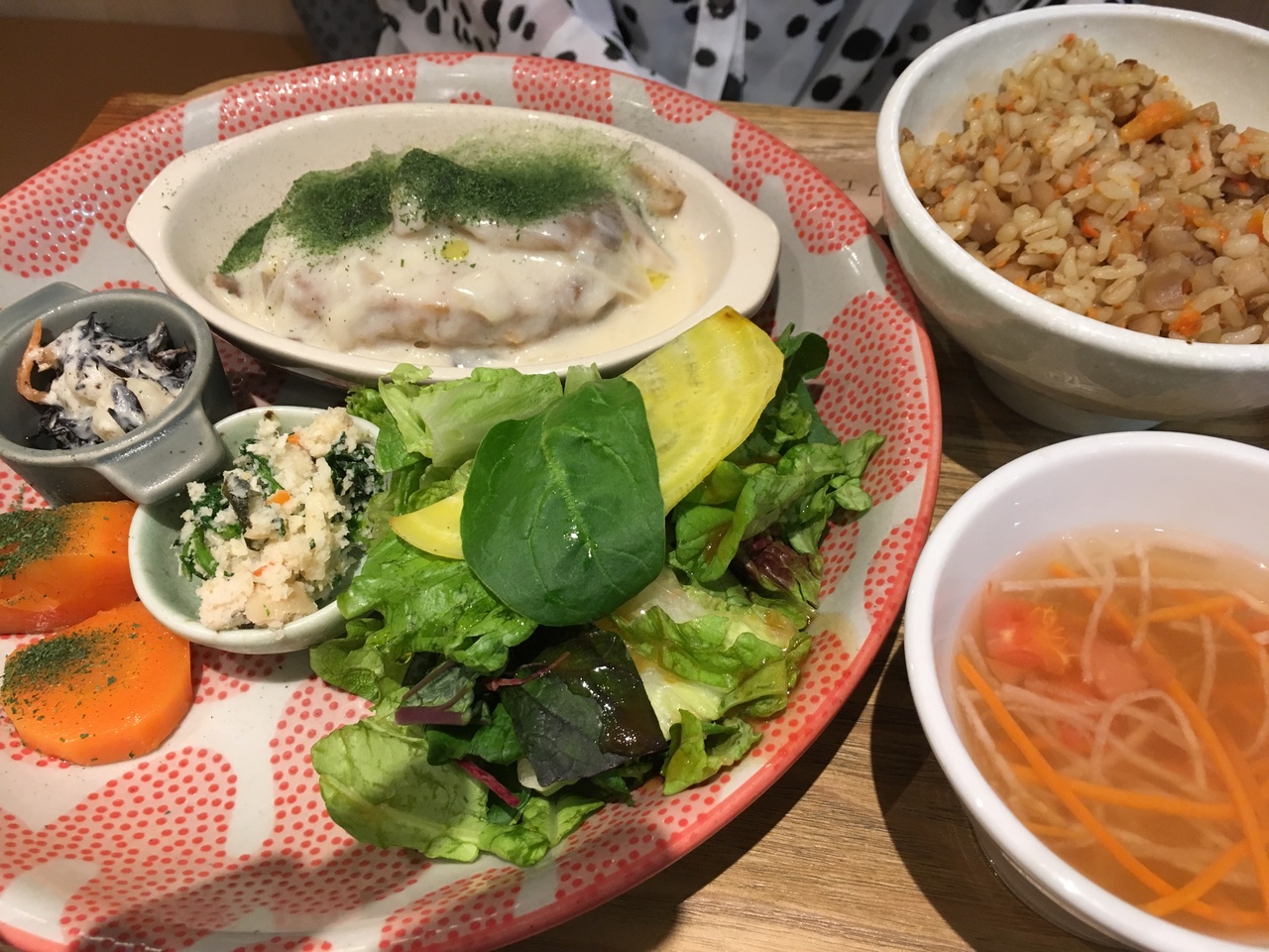 GW中の夕方18時頃。手軽だけどしっかりした内容のあっさりとした食事がとりたくて、JR有楽町駅改札の横のタニタカフェを覗いたところ、並ぶことなく席に案内された。