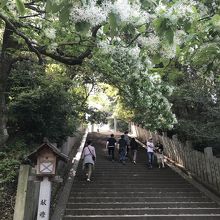 すぐに急な階段!!!東雲神社を通り進みます。整備はされていますが階段以外の坂もそこそ急です。
