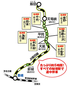新城駅を出て湯谷温泉を10:55に通過して宇連川を望み、東栄駅を過ぎ