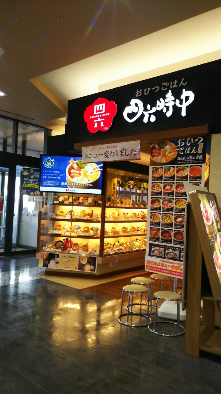 イオンモール成田のレストラン街にある四六時中です。おひつごはんを食べることができます。おひつごはんは、うなぎや魚介類などが乗ったものからヒレカツや焼き肉などが乗ったものまで種類は充実していました。マグロ、サーモン、ウニ、ホタテなどの刺身が乗った「海鮮にぎわいおひつごはん」はお得感がありました。