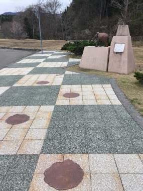 トイレと芝生のみのシンプルなパーキングエリアです。町にナウマンゾウの博物館があることから、ブロンズ像がありました。よく見ると下に象の足跡があったりしてなかなかこっているなと思いました。ドライブ中に休憩するにはキレイな山もすぐ目の前にあり、木が多くて空気もよかったのでいい場所だと思いました。