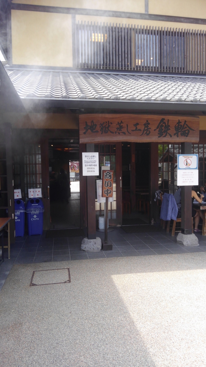 鉄輪温泉の中には、野菜や卵などをセットで買ってきて自分等で蒸して食べられる場所がありました。平日の午前中なのにたくさんの観光客で賑やかでした。アジアの方達も多く居ました。卵を買って15分程で蒸しあがりました。テーブルも整っていますので、そこですぐに食べられて便利でした。