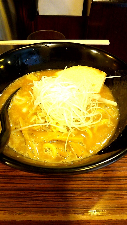 今回は濃厚魚介ラーメンに無料ネギをトッピングしてもらい