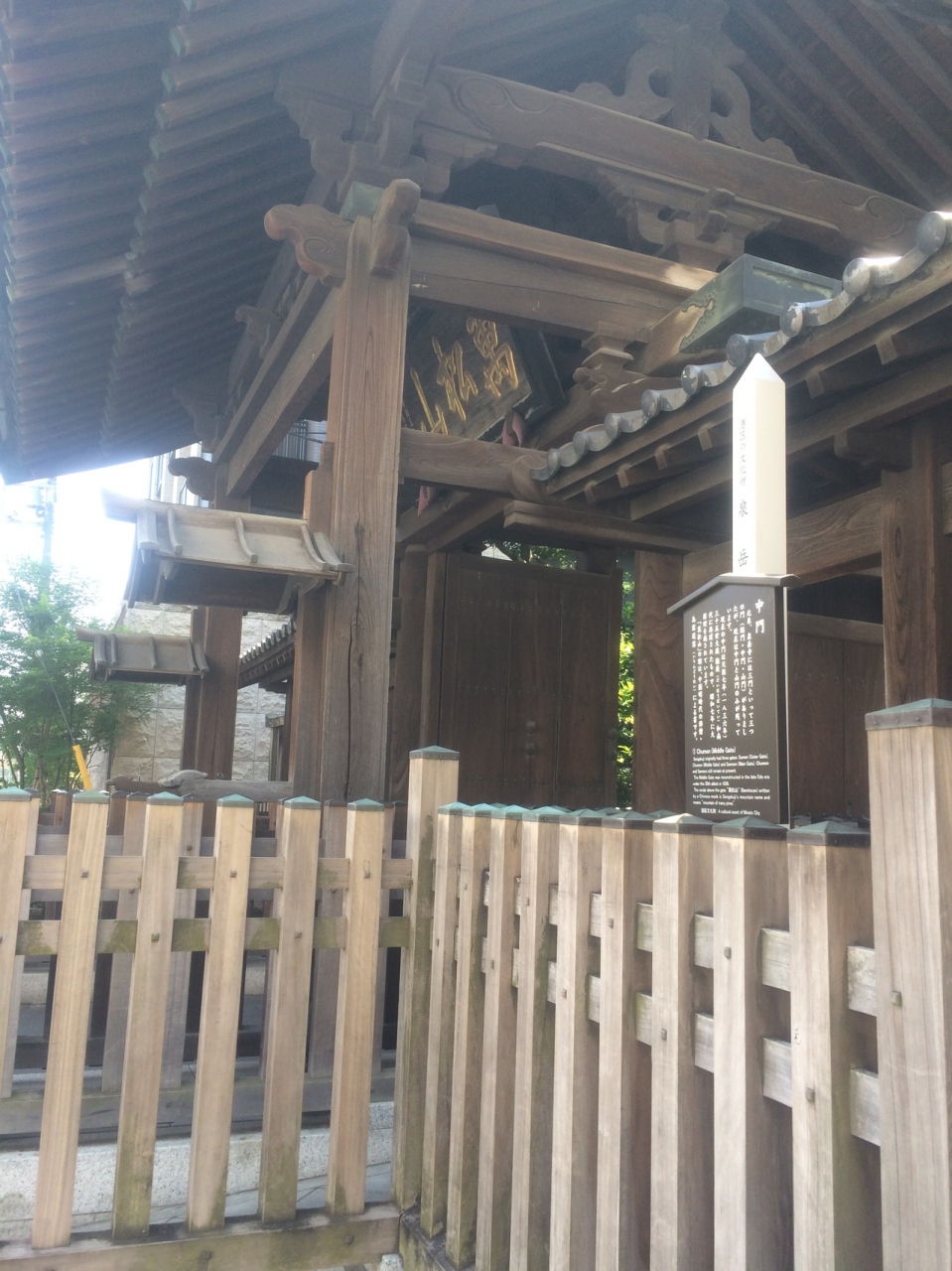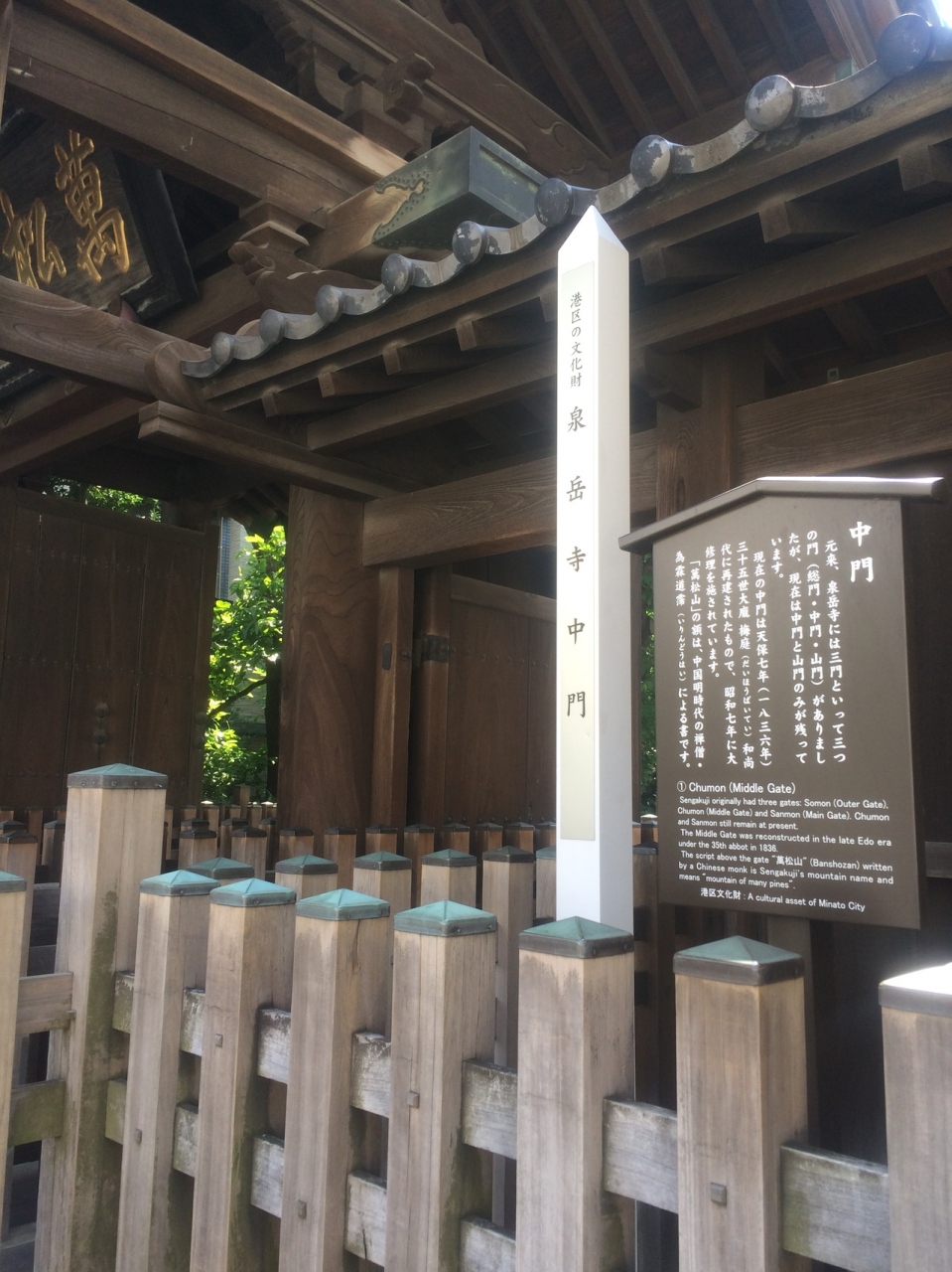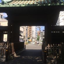 昔は3つの門があったようですが、現在は2つの門が残り、そのうちの一つです。境内に入る最初の門で小さめ家の中の庭に入るような感じでした。土台は木で古めかしく、屋根はグリーン系の色でした。門の横にも出入り出来るところがあります。