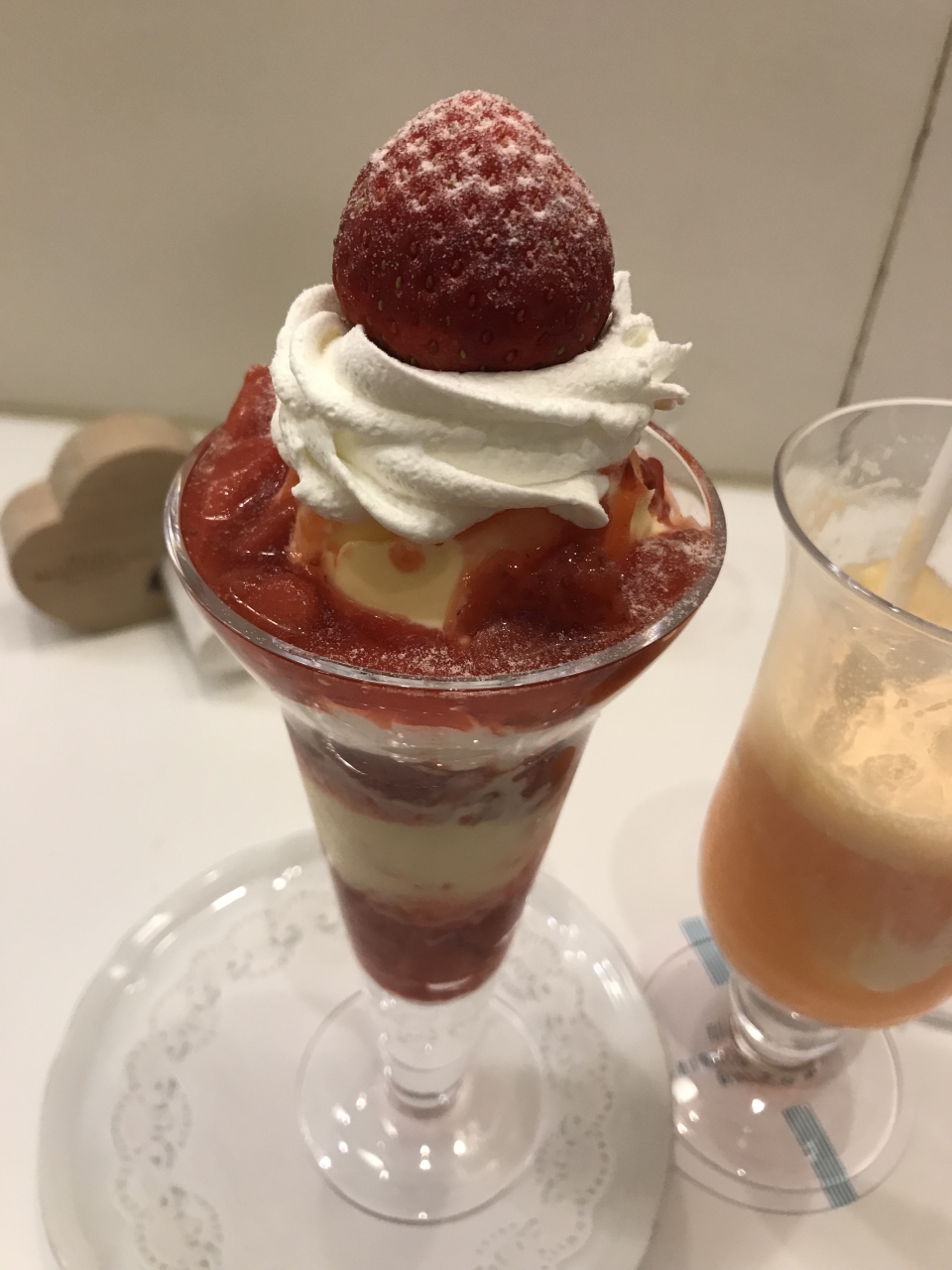 晩御飯を資生堂パーラーで済ませました。苺のミニパフェとオレンジソーダ―を1人で注文。贅沢な時間となりました。こちらの店舗ではミニパフェがメニューにあるのが嬉しいです。オレンジソーダ―や苺ソーダーといった、普通なら季節メニューぽいのも常時頼めるのが嬉しい。