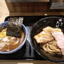 阪急梅田駅構内にあるラーメン屋さんです。金曜日の夕方でしたが少し行列ができてました。注文したのはつけ麺です。麺はもちもちしていて濃厚なつけ麺とよく合いますね。食べ終わった後のスープ割がスープの魚介のだしが効いていておいしかったです。