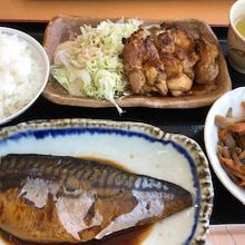 炭火焼きの魚や鶏モモ、煮魚やお惣菜の種類も豊富でどれにしようか目移りしました。鶏モモ炭火焼は香ばしくて甘辛くておいしかったです。手頃な価格でおなかいっぱいになりました。14時でもたくさんお客さんが来ていました。