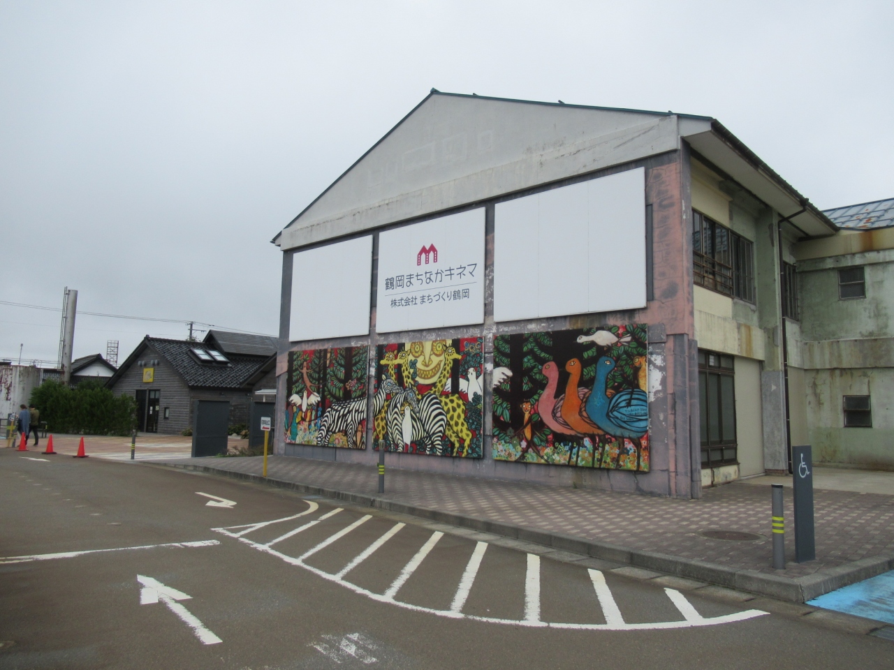 古びた建物の壁に鮮やかな絵が描かれていたので、こちらが映画館かと思いきや、映画館はその隣の小さな木造の建物でした。映画館は建物2つですが、一方の建物の入口部分はパン屋さんで、大混雑していました。