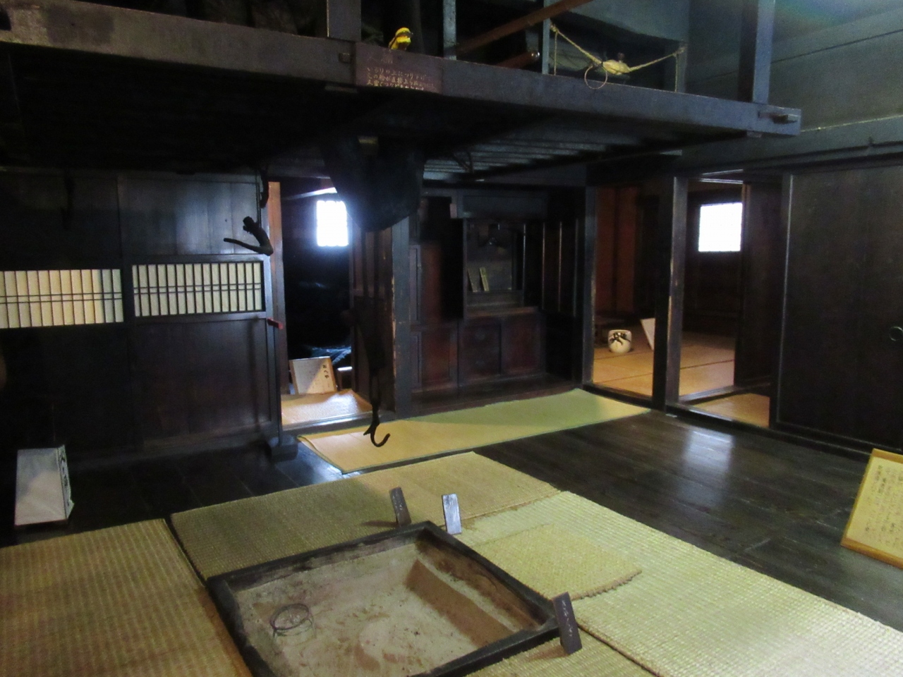 致道博物館の一番奥にある立派な茅葺屋根の建物です。豪雪地帯にあった農家のお宅を移築したそうで、建物の中には当時の農家の暮らしや農機具などが紹介されていました。とても大きな建物で、2階3階もあり、小さなハシゴを使って上がり、上の階も見ることが出来ました。