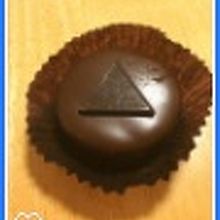 丸い形のケーキにトレードマークの三角のチョコがトッピングされています。