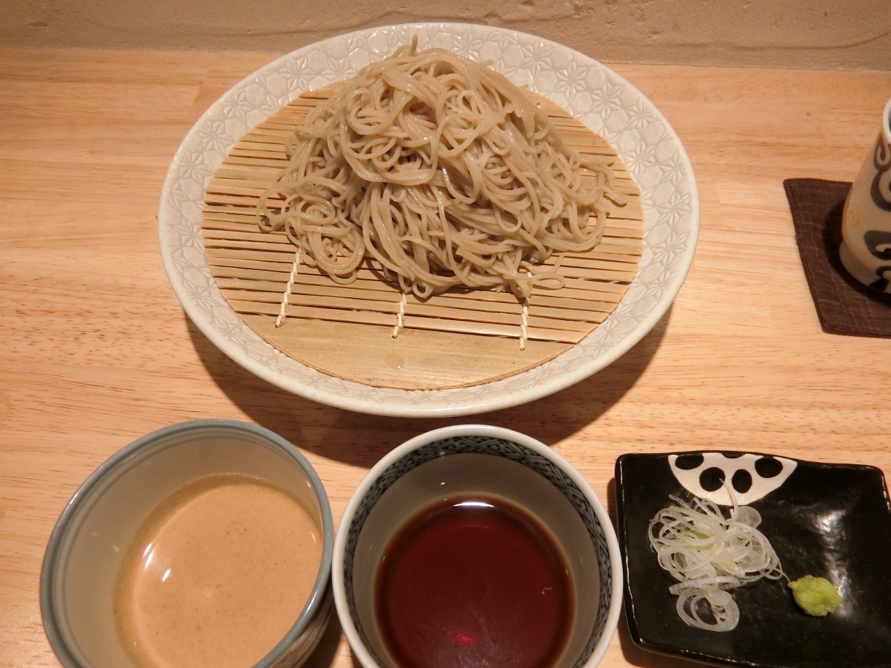 恵比寿の駅から歩いて10分ぐらいかかります。ビルの地下にありますが、入口がちょっと分かりづらいです。ネットでコース料理を予約していて、カウンター席に通されました。先付、揚げ物、お椀、向付と出てきます。ここまでは特別驚く料理ではない。最後のお蕎麦は、少な目、普通、大盛を選べます。もちろん大盛りを頼みました。麺は細めですがコシがあり美味しいです。つゆも普通のつゆとくるみだれが出てきました。大盛りにしてよかったです。最後のデザートも5種類あり、蕎麦コーヒーアイスにしました。最中の中にコーヒーアイスと蕎麦の実が入っていて、最中はパリパリでとてもおいしかったです。