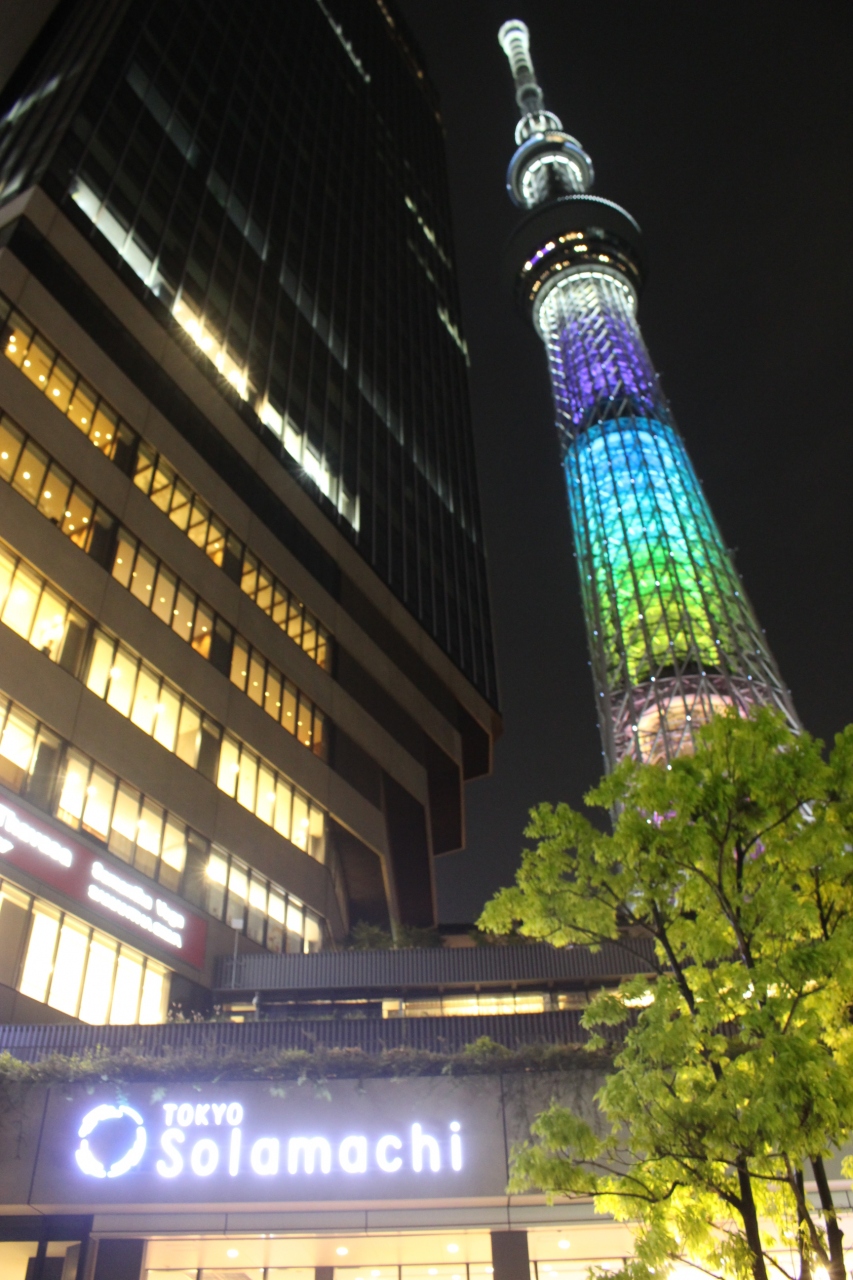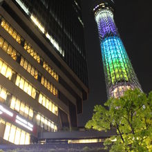 とても広い!テラスから見上げたスカイツリーが迫力がありました