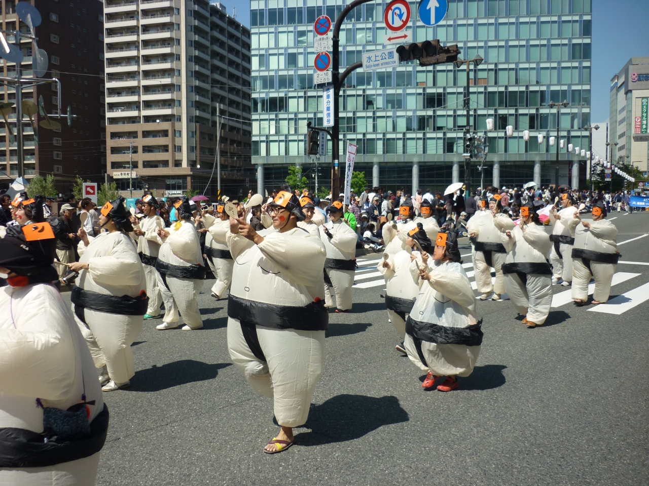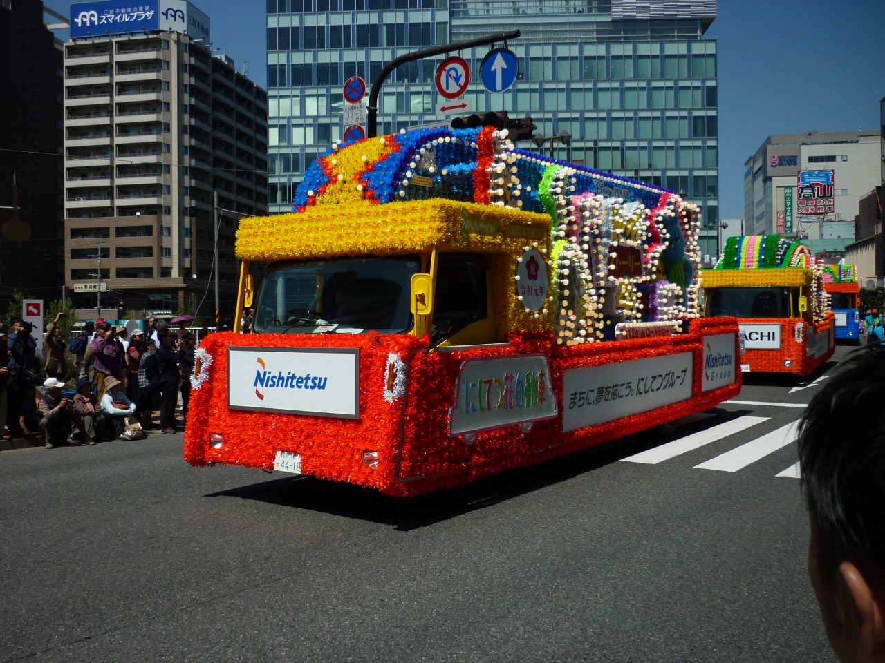 20年近く福岡市内に住んでいましたが「博多どんたく」のパレードを見物したのは初めてです。特設会場があちこちにできて、花電車(今は花バス)が市内を巡回するのがニュース番組で報じられると、またうるさいときが来たなという印象でした。でも平和っていいなと思います。