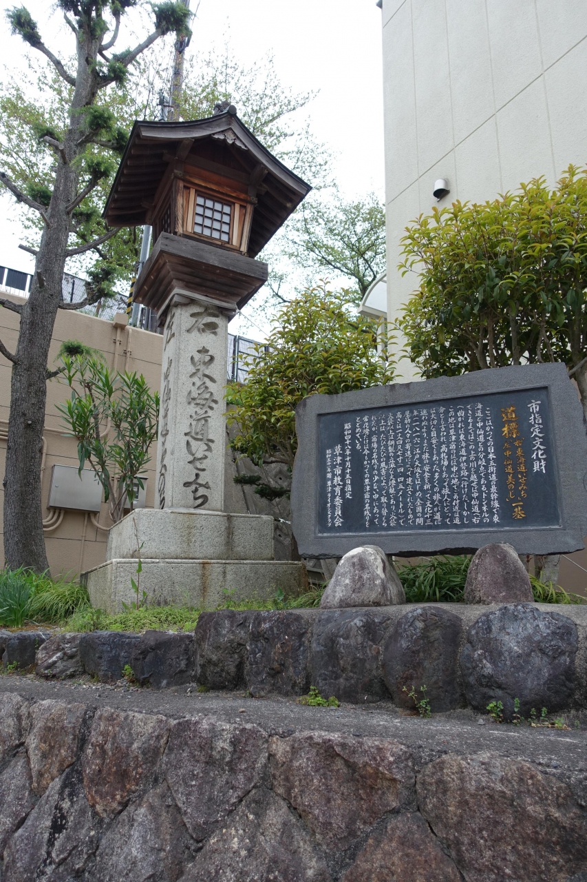 草津宿散策において、旧東海道を北に進み、JR草津駅の近くになると「追分道標」が現れます。東海道と中山道の分岐点を示すもので、大変重要な場所であることが分かります。草津宿の見ごたえある景観もこのあたりまでで、私たちはここから旧中山道方面に向かいました。