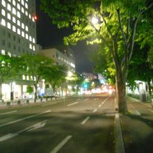 20~25分位かかりますが、まっすぐなので分かりやすく、特に東側(楽天の球場側)は空いているのでお散歩にもおすすめの通りです。車の交通量も夜は少ないので、結構閑散とはしていますが。。