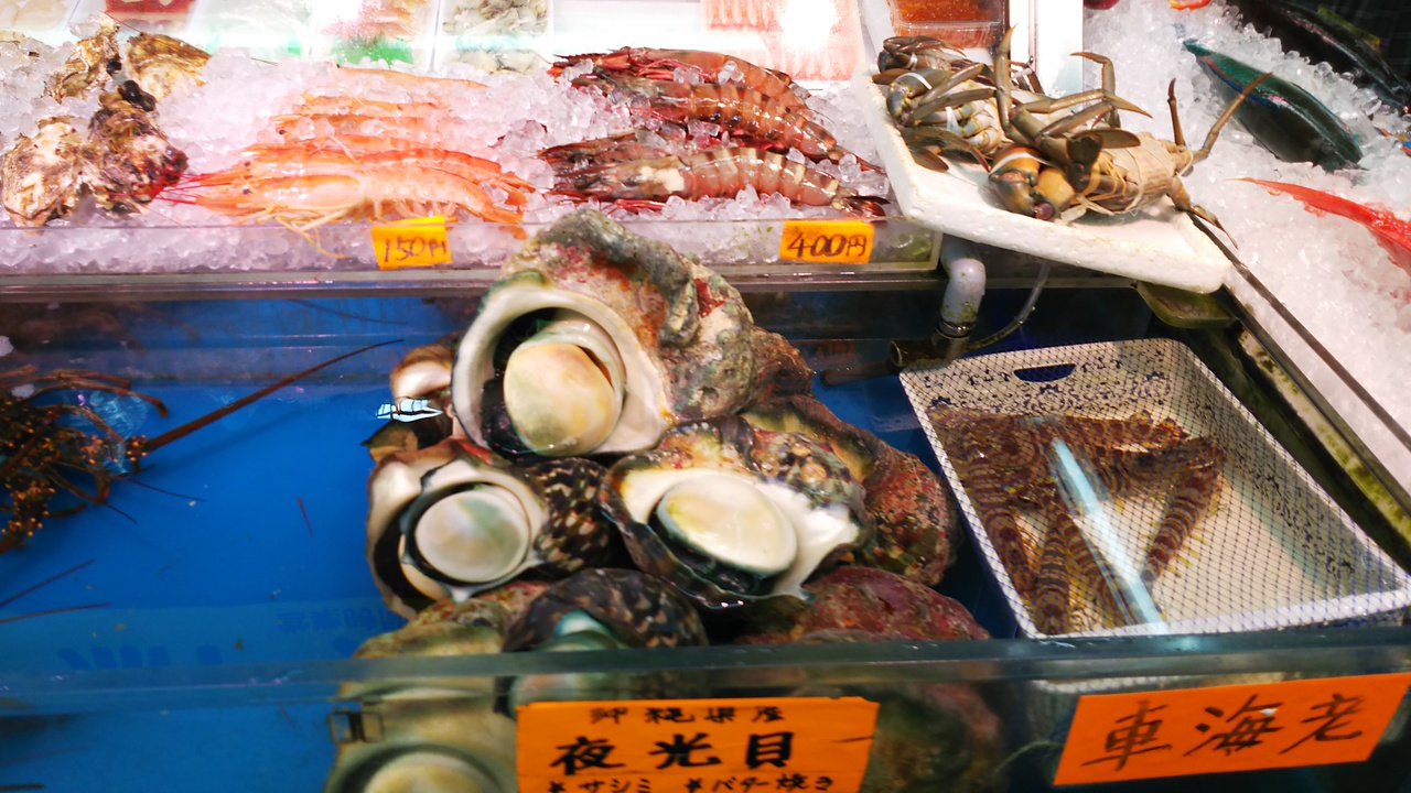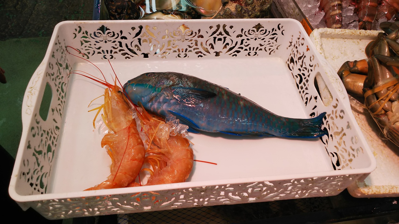 色々な魚をみているだけでも、楽しいです。まず、魚を選んで、一階の簡単ないすとテーブルでいただきました。他に2階で食べる方は、上でも大丈夫のようです。