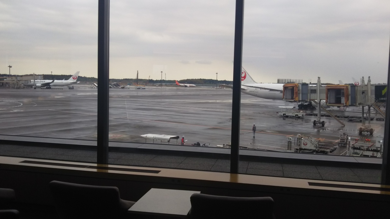 昼過ぎの入場で、かなりすいていました。夕方にはだいぶ混んできました。アルコールも飲めますが、窓際の席でトイレが近くなると困るので、遠慮しておきました。色々な食事かとれるなかでも、ビーフカレーが美味でした。飛行機を眺めながらゆったりと搭乗を待つことができます。