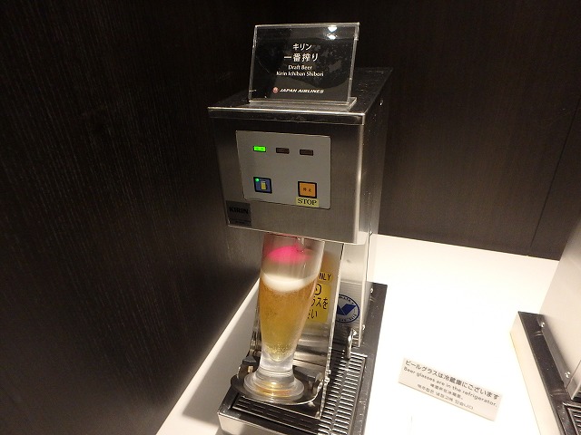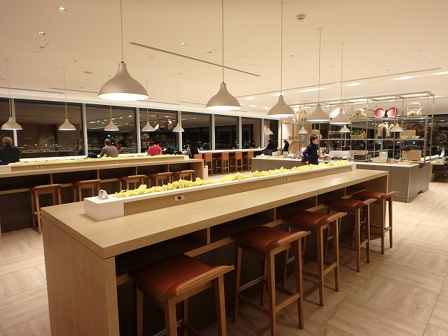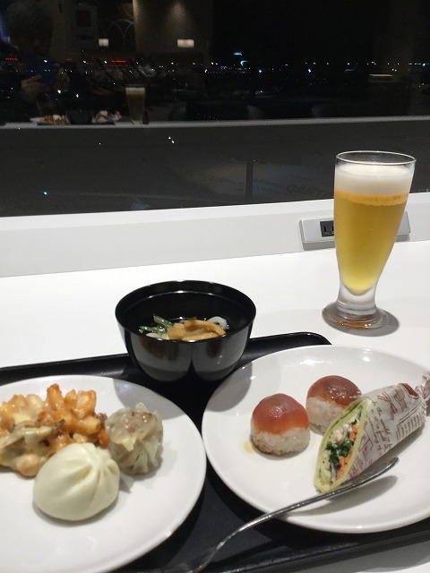 搭乗口142ゲートにより近い、サクララウンジ・スカイビューへ。今回初めて利用しますが、やっぱりさすがの雰囲気があります。食べ物、飲み物とも申し分なく、生ビールは、一番搾りとスーパードライ。