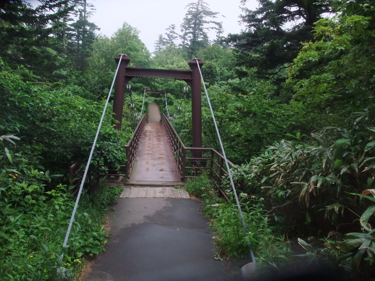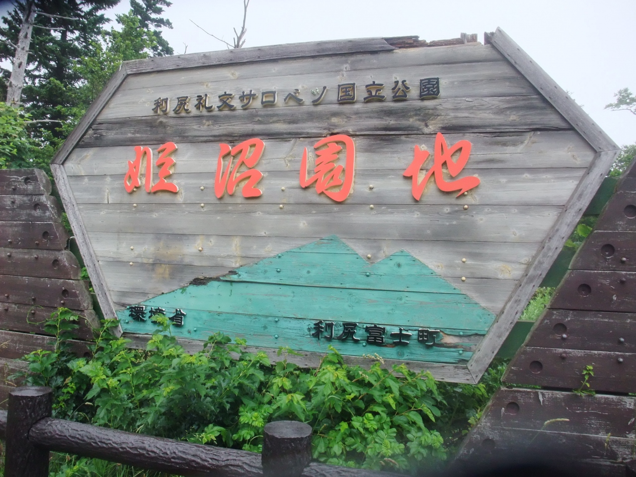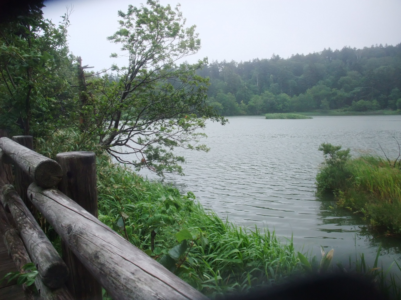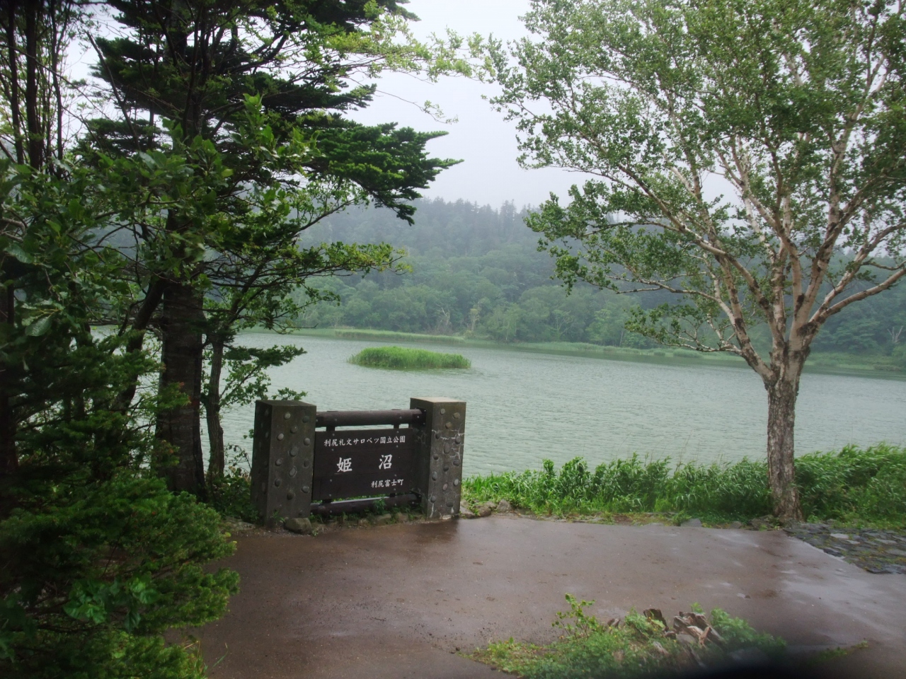 姫沼は、標高130mに位置しており、周囲は約800m、深さ約2mで、利尻山からの湧水をせき止めて造られた人造湖だとか。うっそうとした原生林の中の姫沼には、天気のいい日には利尻富士や姫沼に映る逆さ富士が見えるのだが、私たちが訪れた日は霧が出て、時に小雨も降るこの日で、逆さ富士は無理だった。