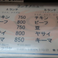三越前駅から3分ほどのところにある人気のカレー店です。店内はカウンター席しかありません。平日の昼前に行くとサラリーマン客でほぼ満席。丁度席が空きすぐに座れましたが正午を回ると混みそうです。頂いたのはチキンカレーのAランチ。スパイシーなカレーが食欲を刺激し、もう少し食べたくなった程です。また、カレー用のスプーンは少し柄に角度のついたこだわりのスプーン。右利きの人には良いですが、左利きには食べづらいと思います。