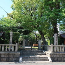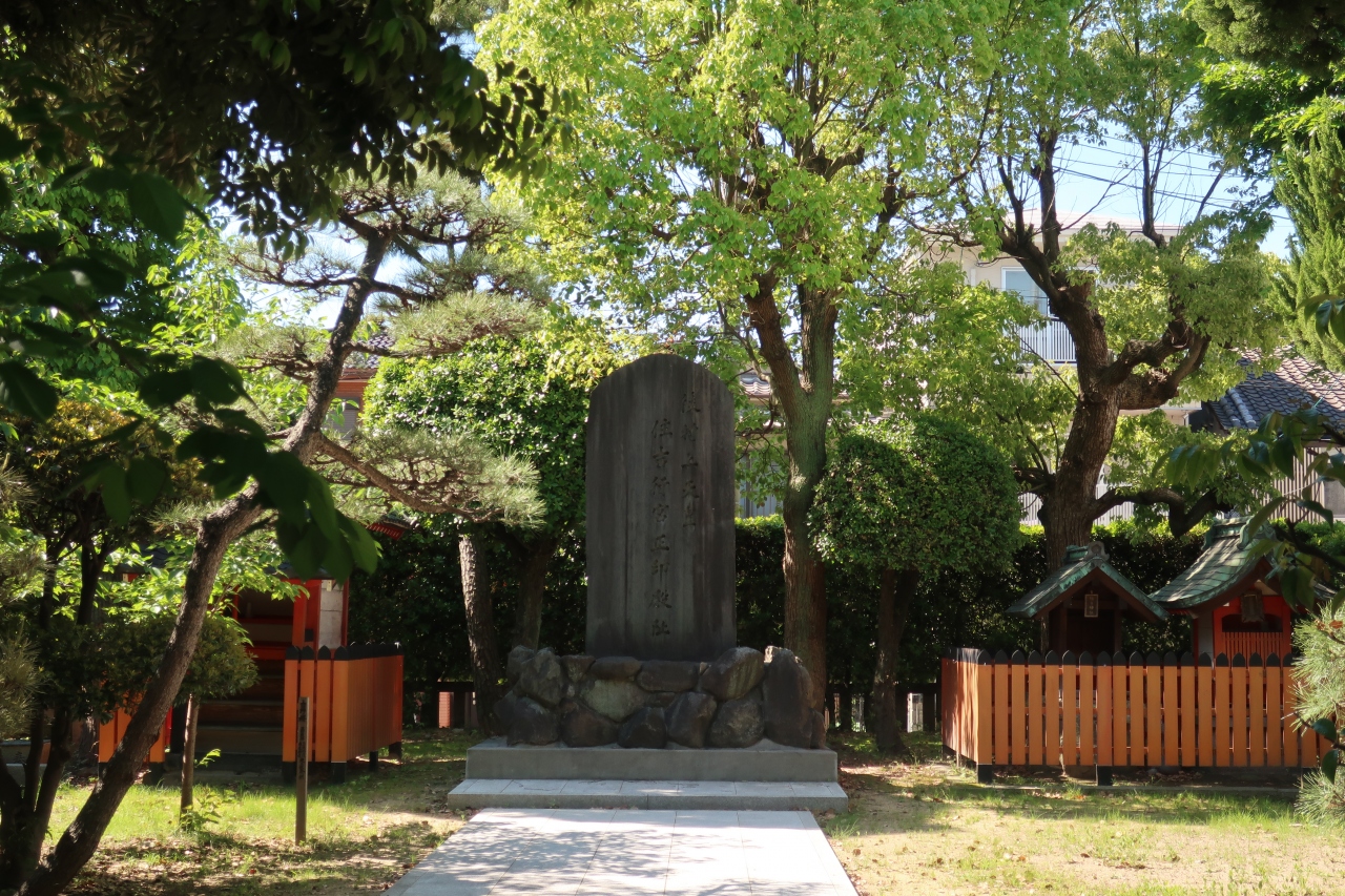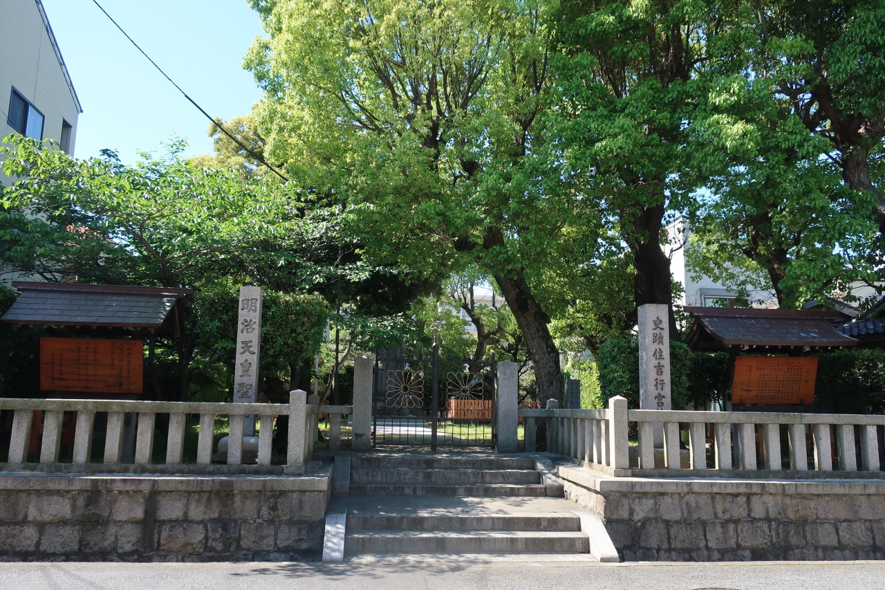 住吉大社の神主を代々務めた家の屋敷の跡に立っています。南北朝時代の南朝の行宮の一つで、後村上天皇や長慶天皇が行宮したという記録があり、ここで崩御した天皇もいらっしゃるとのことです。住宅街の中にひっそりとありました。
