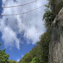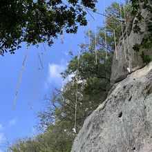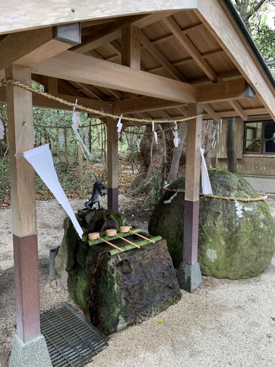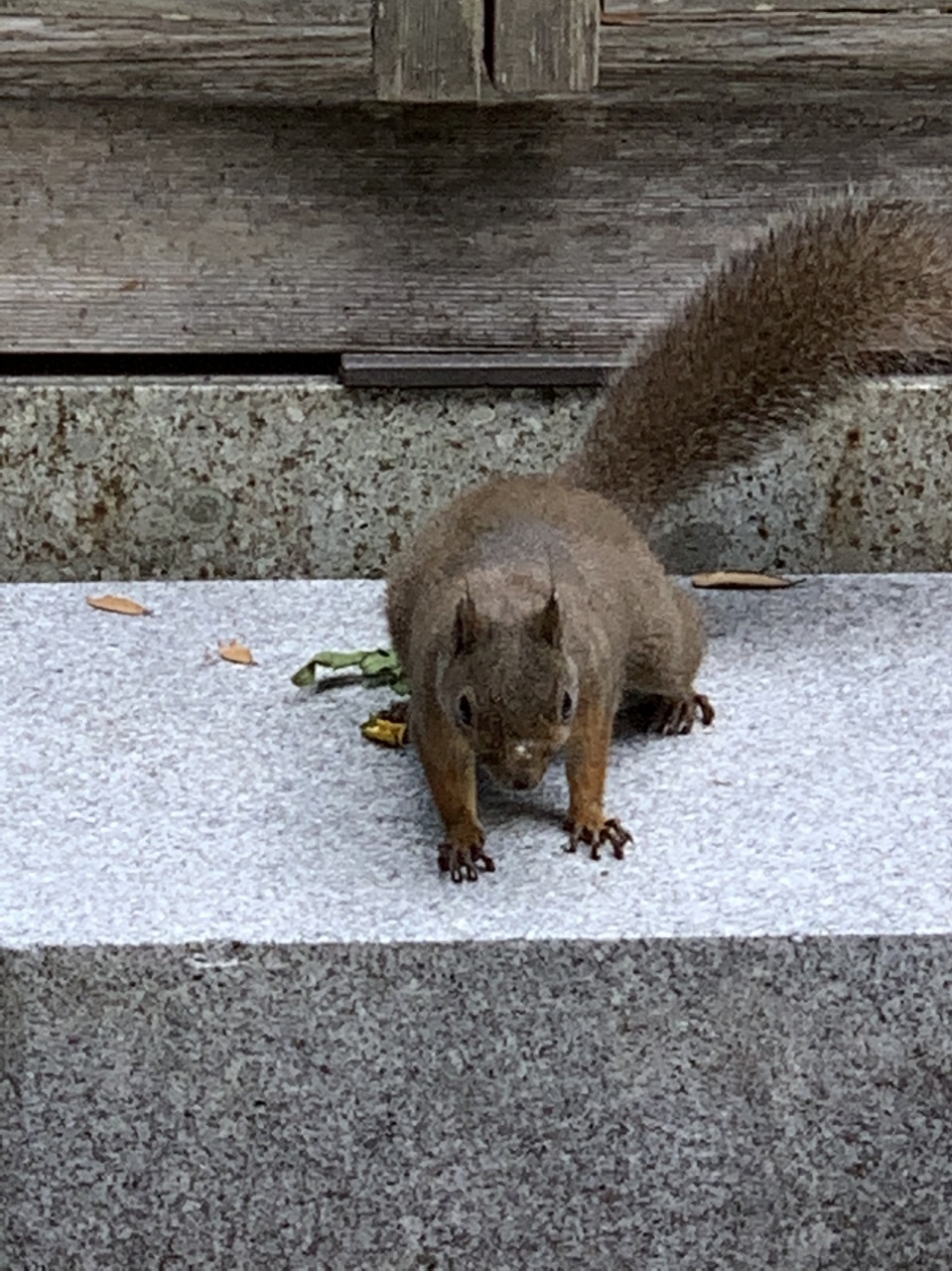 日本書記に出てくる日本最古といわれる岩が御神体の神社。日本神話のルーツといわれる。岩に縄がかけられていてそこから下がる旗縄も神を模している。旗縄は他ではあまり見ず興味深い。敷地にたまたまリスが出てきて自然との調和を感じるスポットだった。