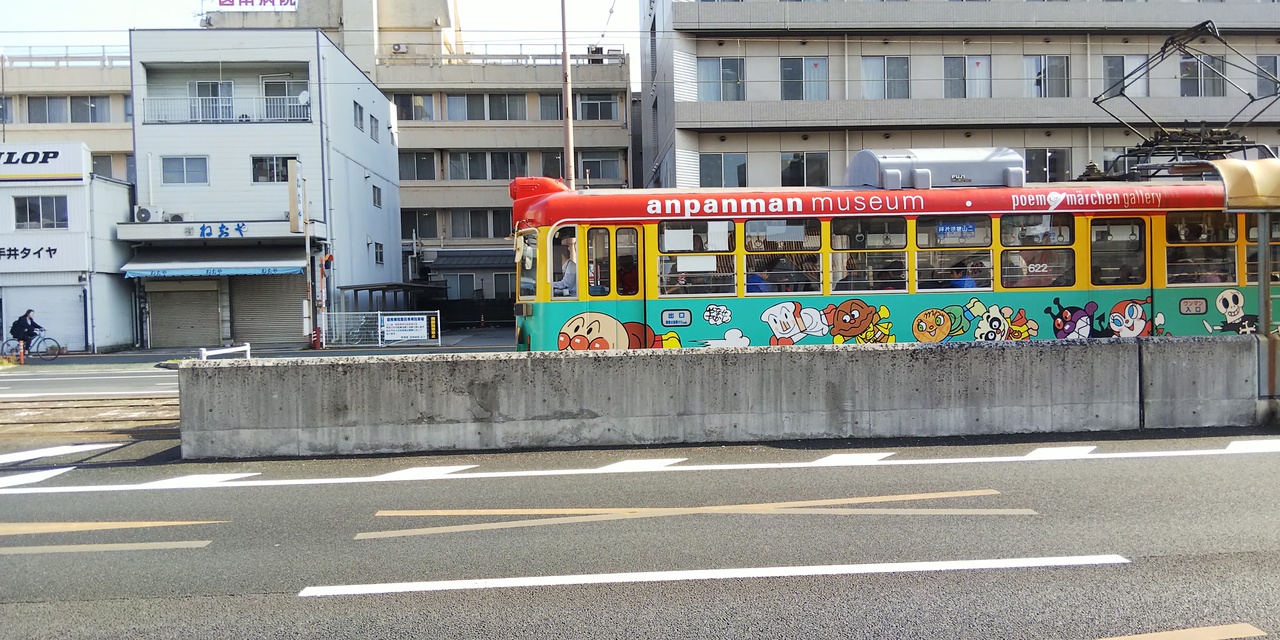 アンパンマンの絵が書いた路面電車もありました。可愛いかった。