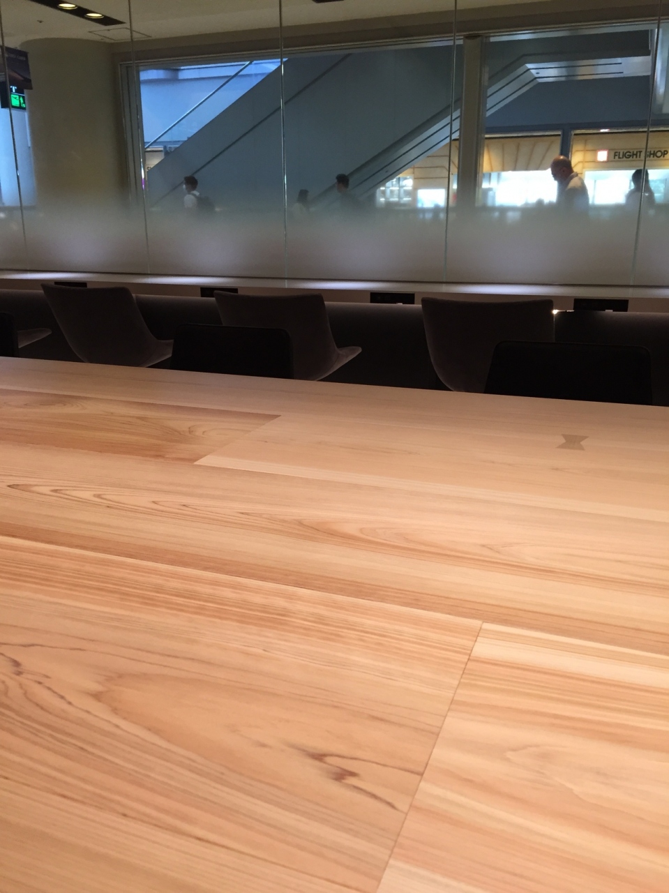 クレジットカードの提示で入室できる羽田空港国内線のラウンジです。アルコールは有料ですが、紙パックの 野菜ジュース、お酢ドリンク、ペットボトルのお水、コーヒーなどが自由に頂けます。大きなカウンターや、1人用の座りやすい椅子など色んなタイプの椅子がありました。スタイリッシュな雰囲気です。