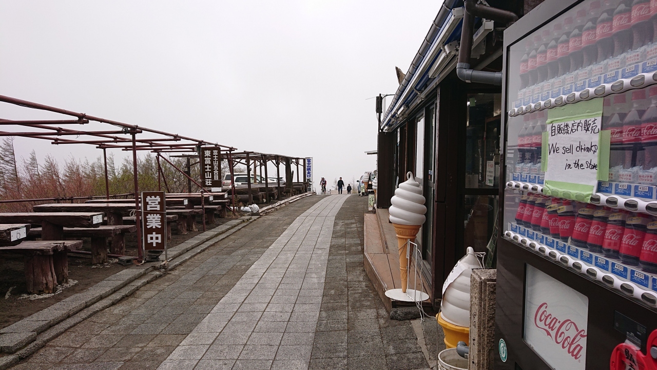 五合目までは車で入ることができるため、山荘といっても街の普通の店舗と変わるところはない。