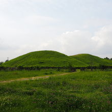 名前の通り2つの山が並んでつながったような形。ここは近くに行って眺めるだけで、古墳に上ることはできませんでした。6世紀の初めに造られた古墳のようです。