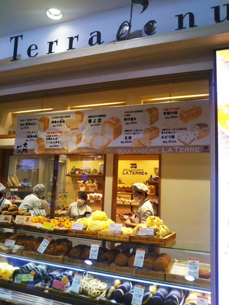 東海道新幹線が停車する駅、JR品川駅の改札内、エキュート品川サウスにありました。ベーカリーやドーナツ、食パンなどを扱っていました。いま流行の食パンはいろんな種類を扱い地域によって小麦や配合、形まで違いいろんな種類を楽しめます。湘南の麦味はふわふわしっとり、モチモチ食感でおいしかったです。