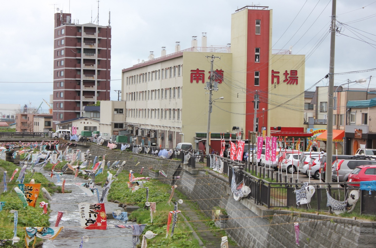 勝納川沿いにあり、5月のためか市場横の勝納川には多くの「鯉のぼり」が飾られていました。
