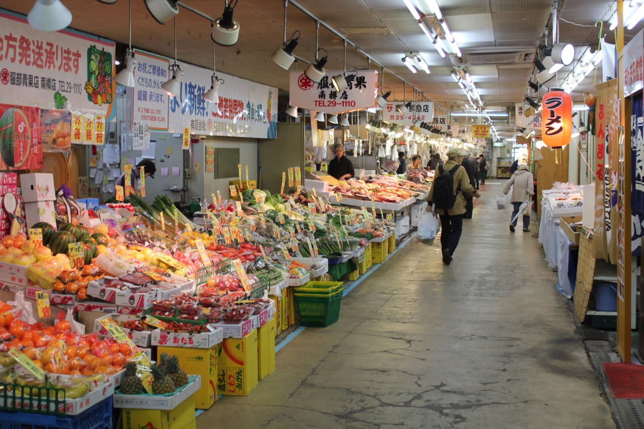 小樽市内の他の市場と比べても買い物客が多くて活気があり、価格も安いようでした。