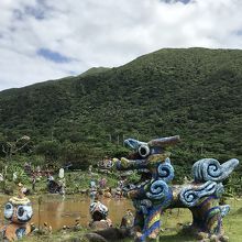 いろいろな所で見る米子焼ですが、こちらには米子焼を販売している売店や体験工房そして広い農園?に巨大なシーサー達を見る事ができます。