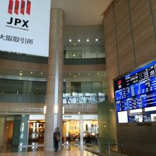 北浜駅近くに、難波橋の南側交差点の南東角にあります。五代友厚公のりっぱな像が建っているのですぐわかると思います。一見レトロですが、中は重厚さを残しつつも近代的な雰囲気でさすが、大きな株価ボードが目を引きました。