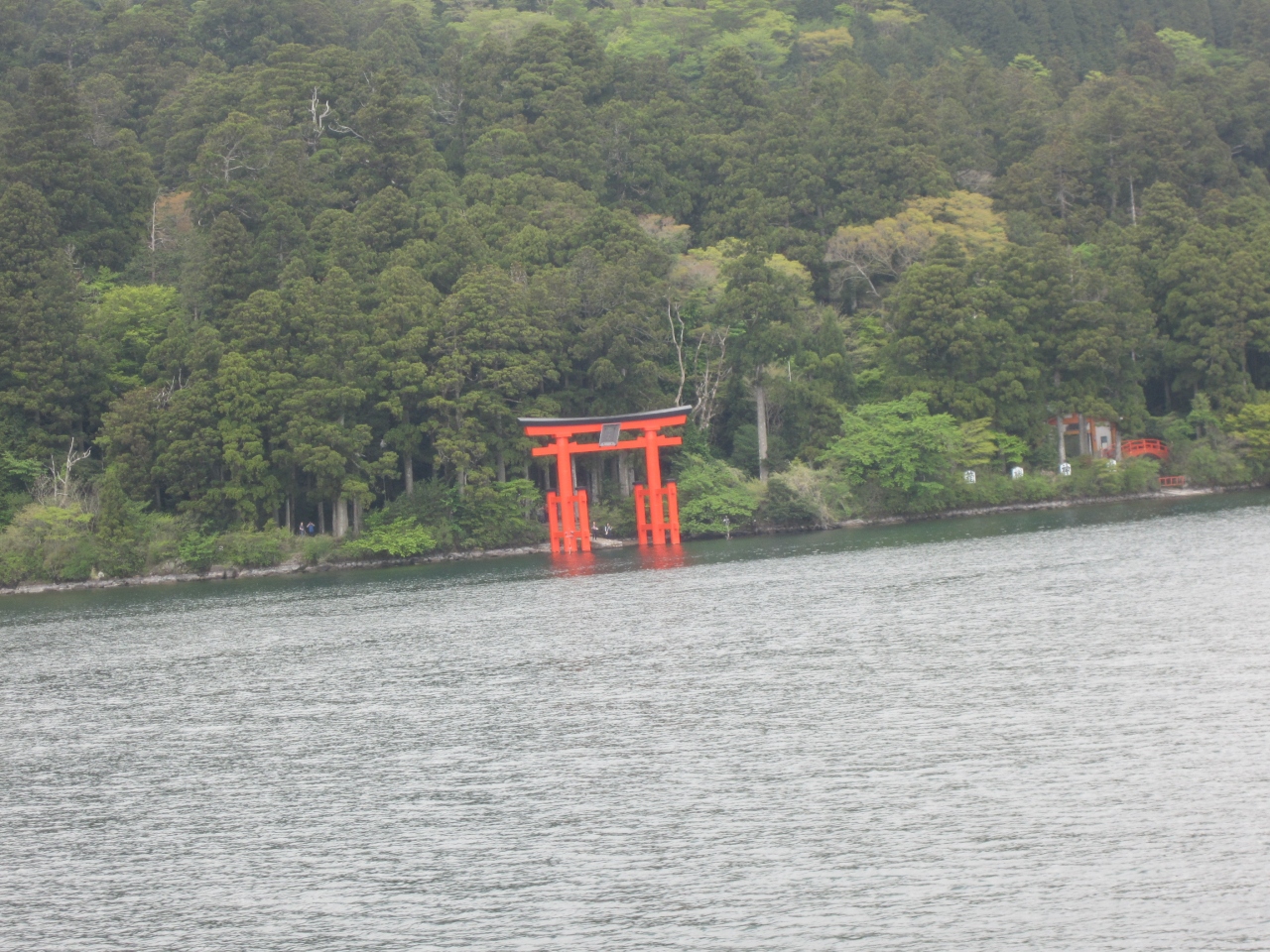 船から箱根神社 平和の鳥居を見ようと甲板の席を取ったら反対側・・